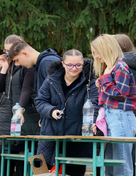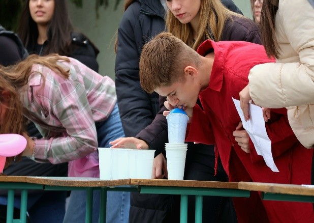 A feladatok között szerepelt pl. poharak egymásba tétele lufi segítségével, vagy 5 pohár egymásba rakása egy kartonpapíron csúsztatva, valamint egy tollat a fejünkre felragasztva beletenni egy palackba. Ezután a székfoglaló következett, amiben szintén lelkesen vettek részt a gólyák, és nyilván nem maradhatott el a programok közötti vidám bulizás sem.Miután végeztek a feladatokkal, fogadalmat tettek a végzős osztályok előtt, amely után az első családi napunk programja vette kezdetét. Amikor már minden hozzátartozó megérkezett meglepetésként újból előadták meglepetéstáncukat, ami nagy sikert aratott a szülők körében is. Miközben a táncok folytak, addig a zsűritagok végig kóstolták 9 -es osztályok által készített süteményeket, amelyek a választott országok gasztronómiájához kapcsolódtak.